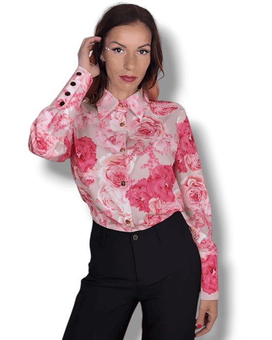 Beigefarbene Bluse mit rosa & pinkem Blumenmuster