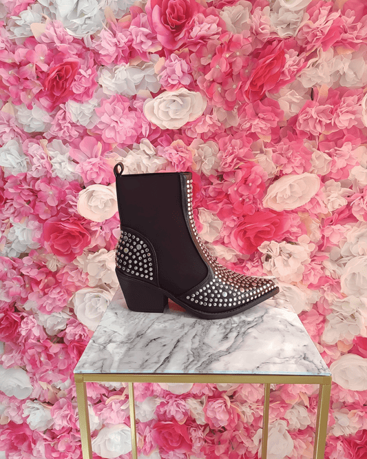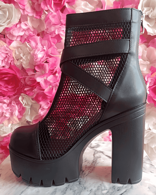 Schwarze Plateau-Stiefel mit Netzdesign und Schnallen Xenia