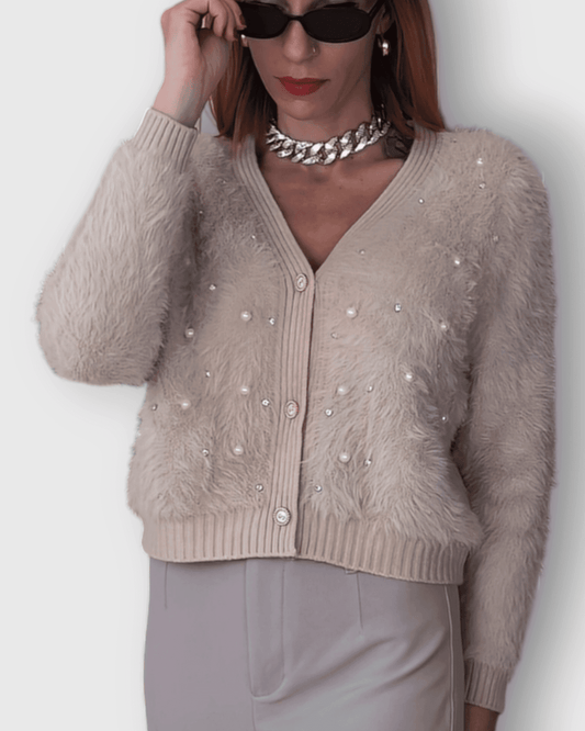 AusverkauftPullover Alice Beige mit Perlen